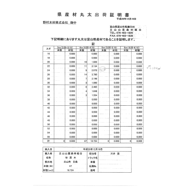 立山杉の証明書